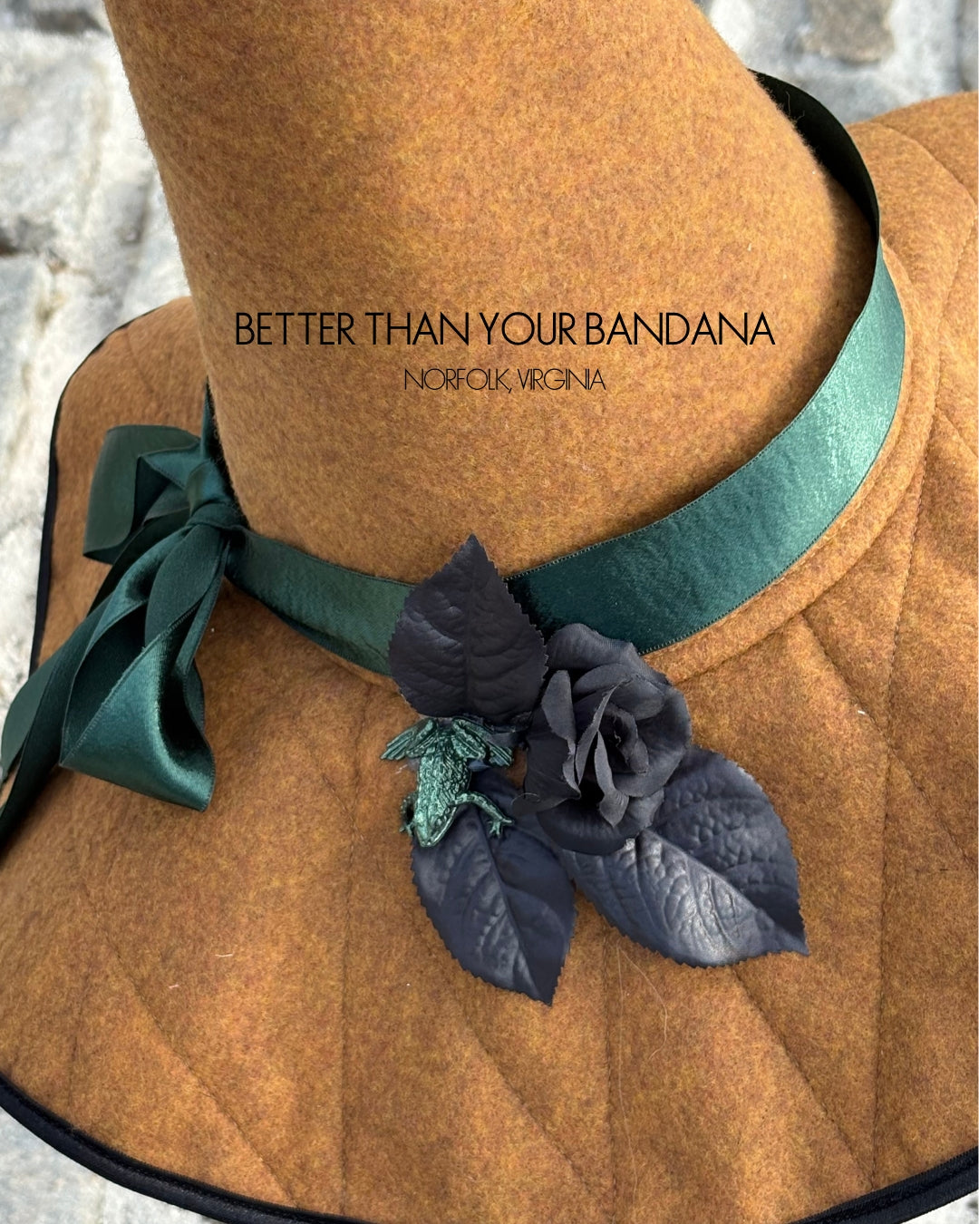 This 1 of 1 witch hat is handmade and quilted by Erin. Materials used to create this hat were sourced locally.