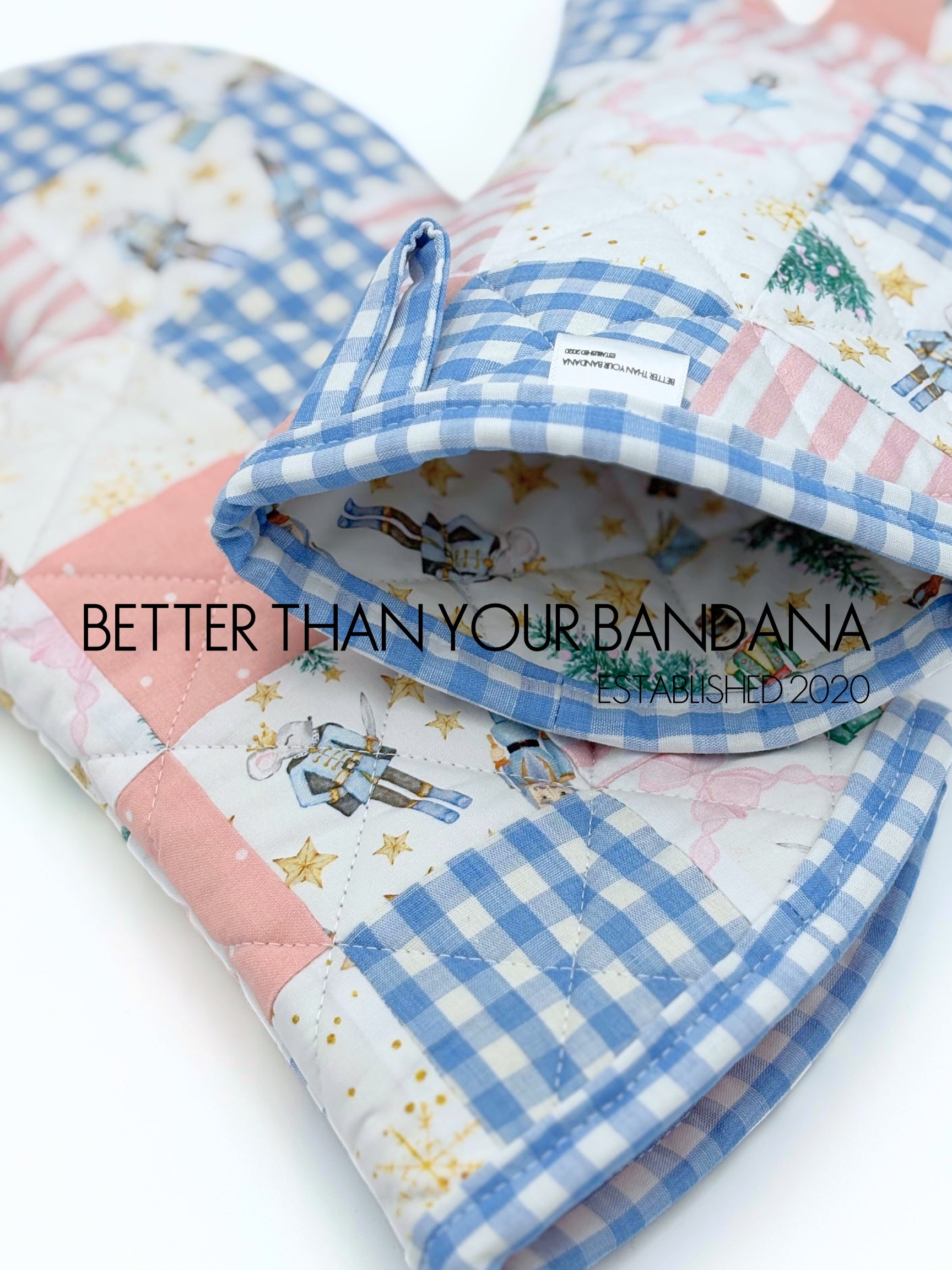 These 6 layered, extra long oven mitts are just the thing you need to bring coquette holiday vibes to your kitchen, and protect your paws while baking/cooking this season.