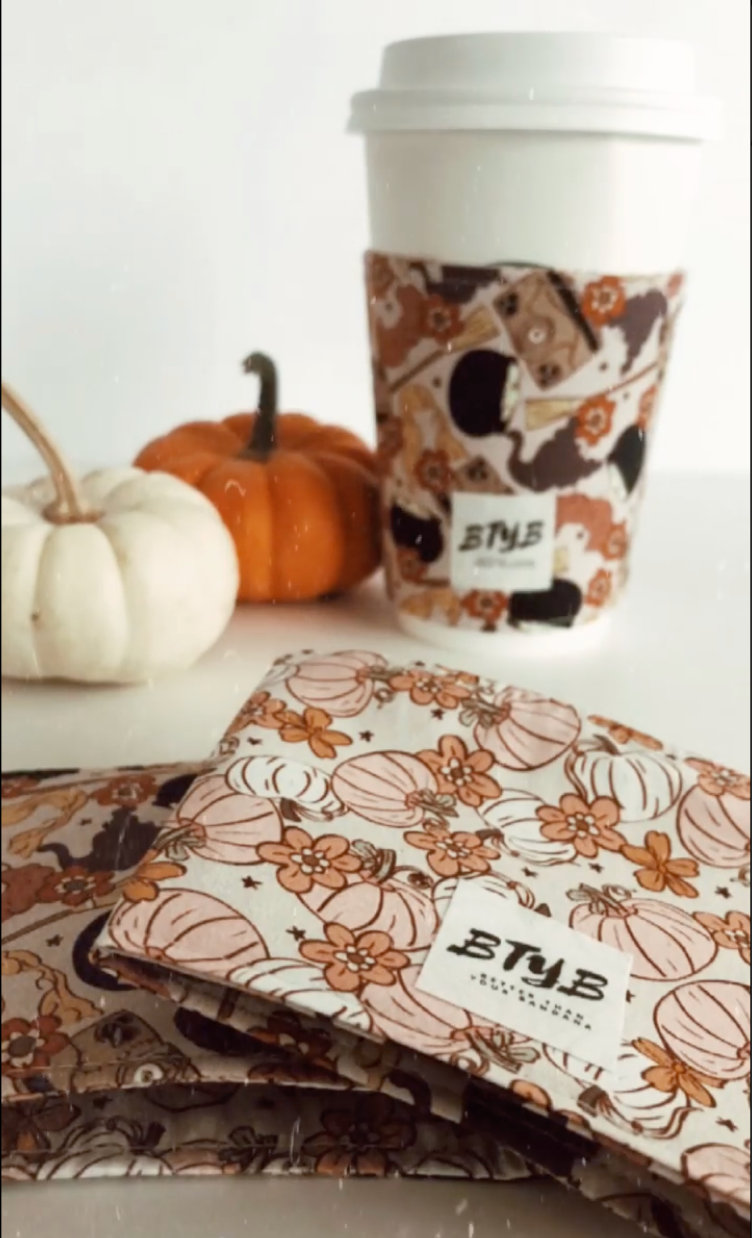 These reversible coffee sleeves are made with two layers of fleece interfaced cotton to give your hands something cozy to hold onto as you sip your latest caffeinated concoction or herbal potion.